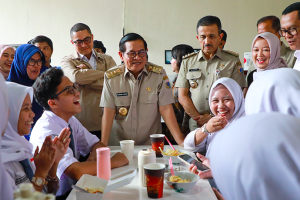 nusakini.com, Gubernur DKI Jakarta, Pramono Anung meresmikan program Revitalisasi Kantin Sehat di tiga sekolah, yakni SMKN 57 Jakarta, SMKN 63 Jakarta, dan SMAN Unggulan MH Thamrin, di SMKN 57 Jakarta Selatan, Pasar Ming...