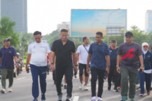 nusakini.com, - Penjabat Gubernur Sulsel Prof Fadjry Djufry jalan sehat bersama Regional CEO Bank Mandiri Sulawesi dan Maluku, Atta Alfa Wanggai, beserta dengan para kepala Organisasi Perangkat Daerah (OPD) lingkup Pempr...