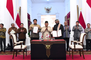 nusakini.com, Presiden Prabowo Subianto menyaksikan penandatanganan nota kesepahaman atau memorandum of understanding (MoU) Pengembangan Proyek Hunian 1 Juta Unit antara Menteri Perumahan dan Kawasan Permukiman (PK...