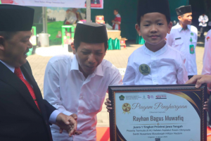 nusakini.com, Ungaran – Seorang bocah berdiri tegak sempurna di deretan para penerima penghargaan, pada peringatan Hari Amal Bhakti ke-79 Kementerian Agama, di Halaman Kantor Kemenag Kabupaten Semarang, Jumat (3/1/...
