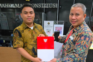 Tim kuasa Hukum Andalan Hati Murlianto (kanan) memperlihatkan bukti pengajuan permohonan sebagai pihak terkait, di Mahkamah Konstitusi, Jakarta, Jumat (3/1/2025). Foto: istnusakini.com, Makassar — Kuasa Hukum Pasangan Ca...