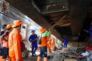 nusakini.com, Camat Setiabudi, Iswahyudi memimpin penertiban bangunan liar di kolong jembatan eks Tugu 66, Jalan HR Rasuna Said, Jakarta Selatan. Iswahyudi mengatakan, bangunan liar semi permanen tersebut ditertibka...