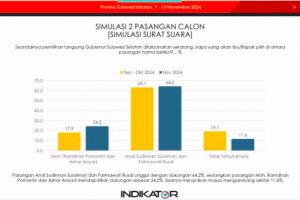 nusakini.com, Jakarta -- Seminggu jelang Pemilihan Kepala Daerah (Pilkada) serentak 27 November 2024, lembaga survei nasional Indikator kembali merilis hasil surveinya di bulan November terkait Pemilihan Gubernur (Pilgub...