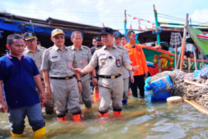 nusakini.com, - Penjabat Gubernur Jawa Barat Bey Machmudin meninjau dampak banjir rob yang terjadi di pesisir Eretan, Kabupaten Indramayu.Banjir rob yang melanda sejak beberapa hari ke belakang menggenangi sejumlah des...