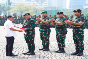 nusakini.com, Jakarta – Wakil Menteri Pertahanan M. Herindra menyerahkan Alat Peralatan Pertahanan dan Keamanan (Alpalhankam) kepada Panglima TNI Jenderal TNI Agus Subiyanto di area Lapangan Monas, Jakarta, Rabu (2/10).P...