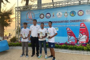 MAKASSAR -- Siswa SMAN 1 Achmad Fathir Pasiangan yang duduk di bangku kelas 2 SMA Sulawesi Selatan, meraih medali perunggu dalam cabang olahraga Pattaya International Windsurfing pada Pekan Olahraga Nasional (PON) X...