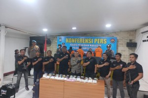 MAKASSAR -- Empat pelaku pelaku peredaran narkoba jenis sabu di Kota Makassar, Sulawesi Selatan (Sulsel) berhasil diciduk Polisi. Pelaku merupakan jaringan narkoba internasional."Ini jaringan Internasional yang menyebera...