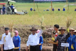 LAMPUNG -- Menteri Pertanian (Mentan), Andi Amran Sulaiman bersama Kepala Staf Angkatan Laut (KASAL), Laksamana TNI, Muhammad Ali berkolaborasi tanam padi di Lampung. KASAL yang diwakili Wakil Kepala Staf Angkatan...