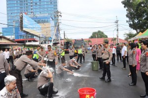 MAKASSAR -- Sebanyak 28 personel Polres Pelabuhan Makassar yang memperoleh kenaikan pangkat lakukan tradisi siram air kembang warna di depan Mapolres tersebut Jalan WR.Supratman (depan taman Gong), Selasa (02/07/2024).&...