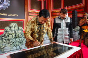 nusakini.com, Jakarta – Menteri Pertahanan Republik Indonesia Prabowo Subianto menghadiri peresmian Replika Kraton Majapahit Jakarta, di kawasan Cipayung, Jakarta Timur, Selasa (7/5).Replika istana Majapahit yang dibangu...