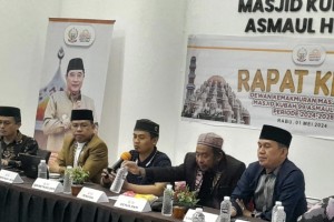 MAKASSAR — Pengurus Dewan Kemakmuran Masjid (DKM) Kubah 99 Asmaul Husna Provinsi Sulawesi Selatan menggelar Rapat Kerja untuk Program Kerja Periode 2024-2028.Rapat Kerja berlangsung di Aula Lantai Dasar Masjid Kubah 99 A...