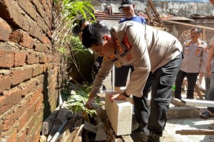 MAKASSAR — Peletakan Batu Pertama oleh Kapolres Pelabuhan Makassar AKBP Yudi Frianto dalam rangka Bedah Rumah , Program Kapolda Sulsel Peduli di kelurahan Camba berua kecamatan Ujung Tanah kota Makassar, Selasa 30/04/202...