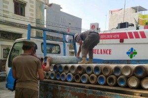 nusakini.com - Jakarta - Satpol PP Kecamatan Grogol Petamburan, Jakarta Barat, ikut berkolaborasi dalam melakukan penanganan COVID-19 dengan membantu melakukan pengangkutan dan pendistribusian tabung oksigen.Kepala Satpo...