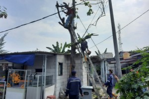 nusakini.com - Jakarta - Petugas Penyedia Jasa Lainnya Orang Perorangan (PJLP) Pertamanan dan Hutan Kota Unit Kerja Teknis 2 Kabupaten Kepulauan Seribu melakukan penebangan pohon ketapang pohon rawan tumbang di Pulau Tid...