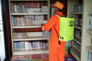 Fasilitas Publik di Pulau Sebira Disemprot Disinfektan