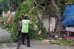 nusakini.com - Jakarta - Suku Dinas Pertamanan dan Hutan Kota Jakarta Barat memangkas tiga pohon jenis angsana, jambu air dan mangga di Jalan Puspa Raya, RT 11 dan 15, RW 12, Cengkareng Timur, Cengkareng.Kepala Suku Dina...